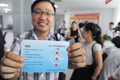 2014年6月17日,河南郑州市金水区行政办事大厅,孙先生领到了单独二孩生育证。