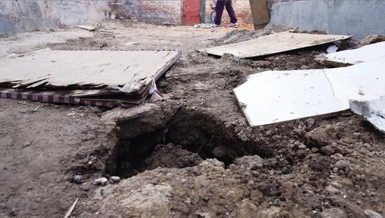 记者看到,院门外的土地上,有三处有被翻动过的迹象,挖出来的泥土松软潮湿。“这些像是被挖开,又进行了回填。”宋先生指着地面说。