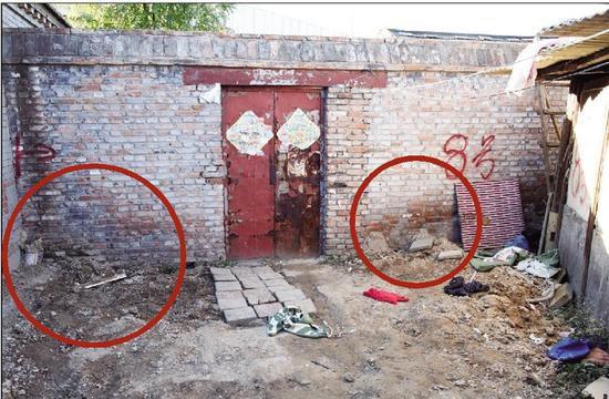 靠近院门口的两个探洞已经被回填了(红圈处)