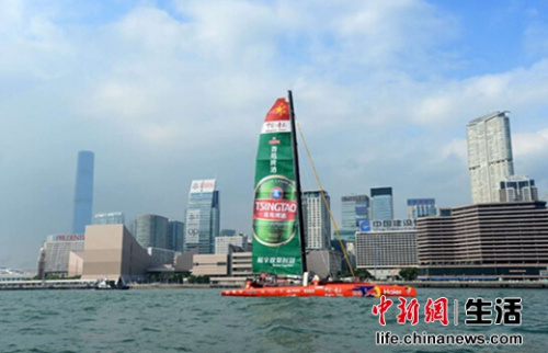 中新网11月2日电 由“中国航海第一人”郭川率领的“中国•青岛”号超级三体大帆船日前抵达中国香港,这也是其21世纪海上丝绸之路第三站的??砍鞘小C?ldquo;青啤之夜”的主题酒会同日在香港游艇会举行,来自香港航海届、红十字会代表、青岛啤酒香港公司代表共同迎接船队的到来。