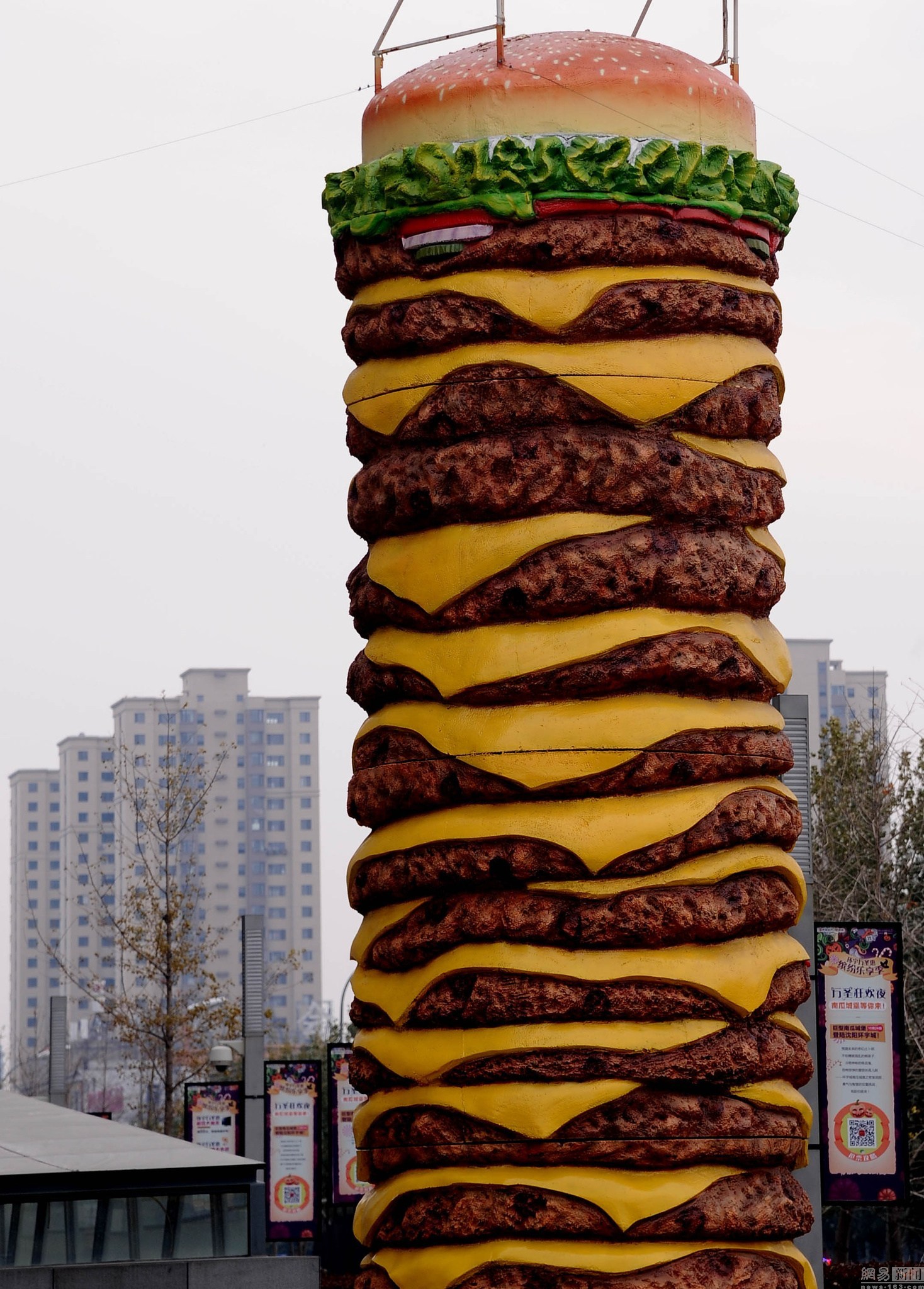 原标题:沈阳街头现十米高世界最大汉堡模型