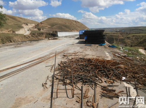 白草滩1号桥,桥头散放的钢筋