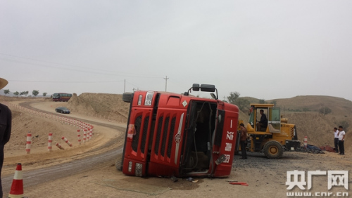 便道上侧翻的卡车【杨先生供图】