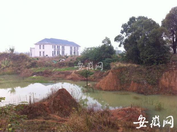 两年多过去了,新安晚报、安徽网记者11月5日来到这栋略带欧式风格的楼房时,发现大楼前荒草遍地,后面一个大坑成了一个蓄水池,周边已被人开辟出来种上了菜。