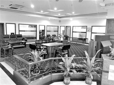 图为光大证券宁波解放南路营业部贵宾室内景,中间一个大吧台,摆放电视音响和茶具桌椅,四周围绕十余间标有数字门牌的贵宾房间。记者 魏董华 摄