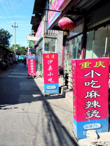 在后厨门外,是胡同的过道,包饺子用的虾和韭菜,就露天摆在室外。记者准备离开时,一名骑电动车的男子前来取餐,准备给订餐户送过去。