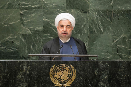 伊朗总统鲁哈尼在联大一般性辩论会上发表讲话。图片来源:联合国网站。