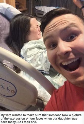 今天我们要讲的是一张这两天在 Reddit 上突破了 200 万点击率的自拍。这张自拍发生在产房里。一个小哥在他老婆生孩子的时候很高兴的凑上去自拍了一把。出来的效果是这样的。