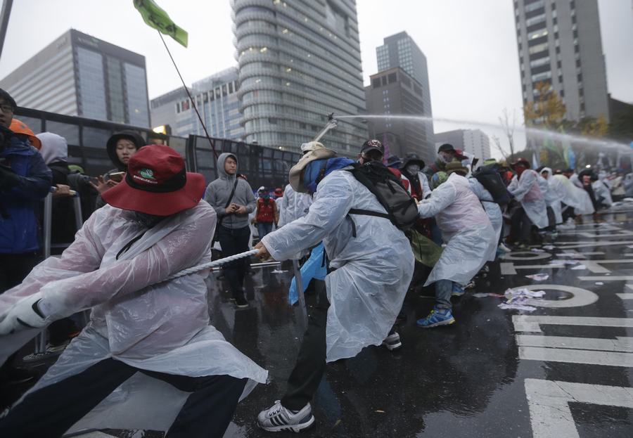 很多示威者高呼“朴槿惠,下台”的口号。示威者在接近总统府时,其中一些人试图冲过警方的警戒线,安全部队施放了催泪弹。目前导致一名示威者重伤,还有多人受伤,并有多人被捕。