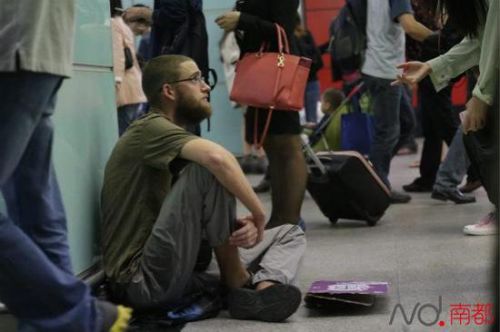 日前,广州东站赶车的人们在提高步速的同时,不忘将目光投给了一位屈腿坐在1号入口处的外国人。他叫Victor, 自称来自波兰,想通过乞讨筹得去昆明的路费。但在附近的街坊都说他撒谎。