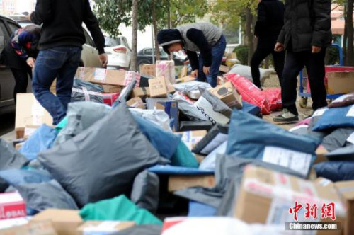 资料图:“双十一”快递物流业迎来井喷高峰。张云 摄