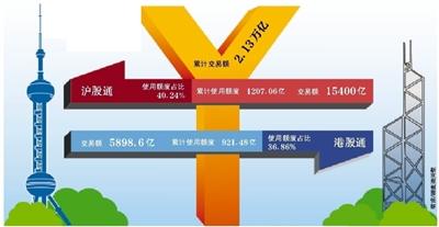 昨日新京报记者统计发现,在正式交易的一年内,沪港通额度使用不足50%。港交所行政总裁李小加11月16日发表“小加网志”称,“沪港通”一周年总成交逾25200亿港元。他表示,截至10月底,沪股通额度共使用约1420亿人民币,占总额度的47%;港股通额度共使用约890亿人民币,占总额度的36%。