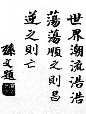 袁世凯篡权后,复辟帝制,孙中山掀起了二次革命,此时也有感于时局,发出“世界潮流,浩浩荡荡,顺之则昌,逆之则亡”的呐喊。