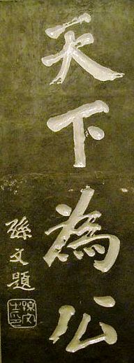 这是孙中山先生辞去大总统职位后,为南洋路矿学校的题字。当时孙中山任民国政府全国铁路督办,设想通过自己的努力,能把中国建设成为像美国一样的西方国家,据说他任职期间提出了要建设三峡的美好愿望。可是大权旁落,理想终归要成为理想。