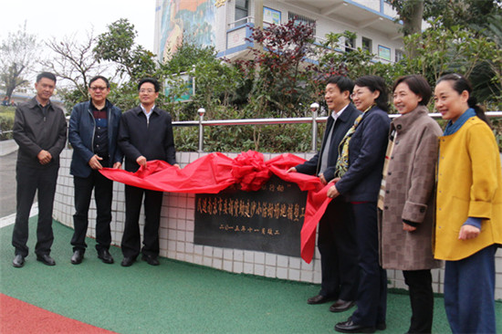 11月11日,民进江苏省委会、南京市委会赴金沙考察送教暨参加“沙小活动场地铺塑工程竣工揭牌仪式”。图为为沙小活动场地铺塑工程竣工揭牌。
