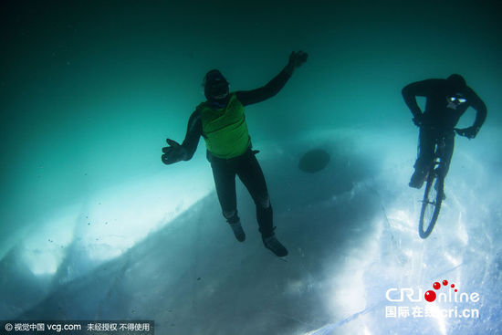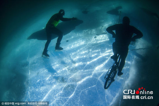 原标题:俄罗斯自行车迷贝加尔湖冰下骑行(高清组图)