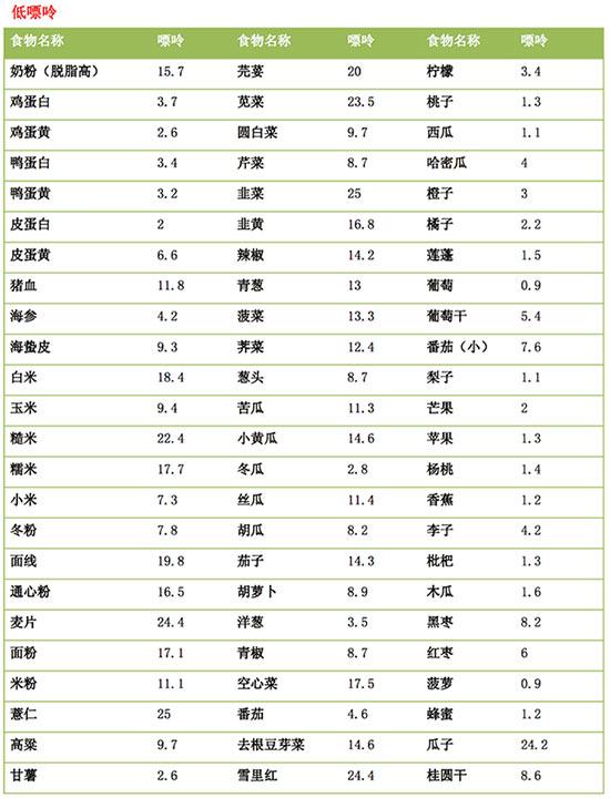 在烹饪食物过程中也要掌握适当的营养知识,尽量选择低嘌呤食物(嘌呤含量低于25mg/100g)。对于那些嘌呤含量高的食物如肉类等,可先将肉煮熟去汤后再食用。常见的低嘌呤食物参照下图: