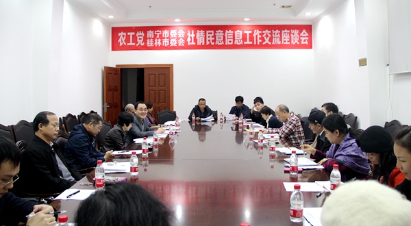2015年11月17日,农工党南宁市委会组织信息工作骨干党员一行15人,赴桂林与农工党桂林市委会就社情民意信息工作进行交流座谈。市委会副主委黄建顺参加了交流活动。