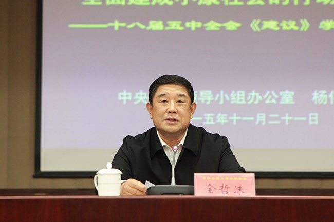 全哲洙指出,党的十八届五中全会是在协调推进“四个全面”战略布局、全面建成小康社会决胜阶段召开的一次十分重要的会议。习近平总书记在全会上的重要讲话,科学回答了关系我国长远发展的许多重大理论和实践问题,以一系列富有创见的新思想新观点升华了我们党对经济社会发展规律的认识,为夺取全面建成小康社会决战胜利提供了有力思想武器。当前和今后一个时期,深入学习贯彻五中全会精神是工商联的一项重要政治任务,要紧密结合非公有制经济发展和工商联工作实际,以改革创新精神落实好五中全会精神,不断开拓工商联工作新局面。