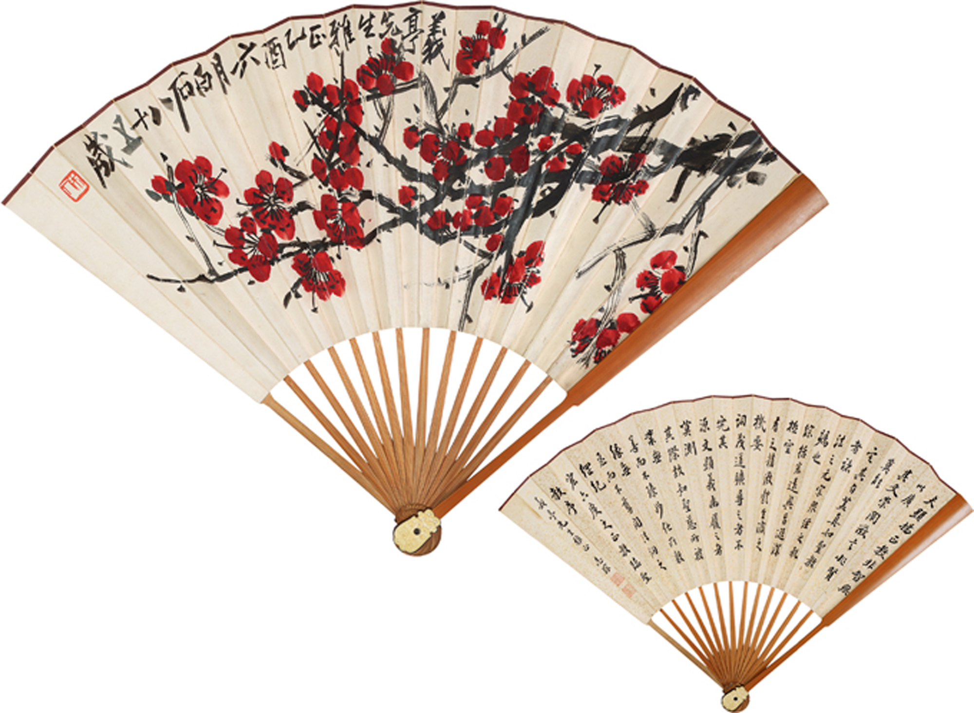 其中,包括诸多名家精品如齐白石的《群虾》、张大千的《溪山访友》、黄宾虹的《金焦帆影》、于非闇的《一品当红》、陈少梅的《杏坛弦歌图》等令人赞叹的大师精品成扇近百余件。扇面书画因其轻巧便捷,颇受书画家、文人乃至百姓的喜爱。再则扇画之清逸、诗文之雅秀、扇骨之精致,向称扇之“三绝”,亦足令人玩味无穷。