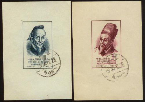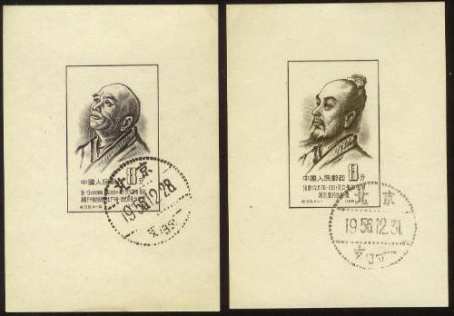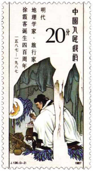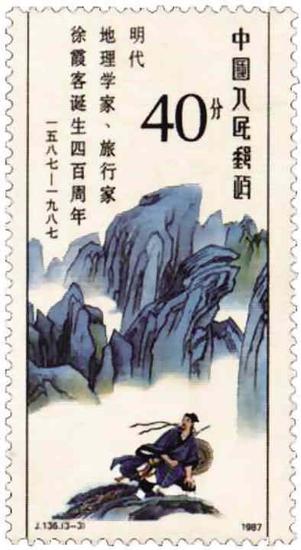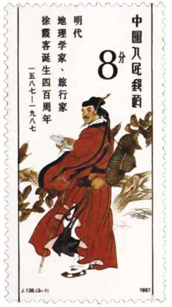 明末科学家徐霞客(公元1587—1641年)用30多年时间游历我国广大地域,进行地理现象的考察,后人整理出版的《徐霞客游记》已成地学中的名著。这三位世界地震学的先驱和他们的研究成果,先后登上邮票。1953年12月4日,原邮电部发行特7《伟大的祖国(第四组)—古代文明》特种邮票一套4枚,(4-2)为“地动仪·记录地震仪器·东汉(公元一三二)”,图案是候风地动仪的复制图(图1)。1955年8月25日,原邮电部发行纪33《中国古代科学家(第一组)》纪念邮票一套4枚,(4-1)为“张衡天文学家发明浑天仪和地动仪”,图案是张衡侧面画像(图2)。1956年1月1日,又为纪33每枚邮票配发无齿孔小型张。1962年12月1日,原邮电部发行纪92《中国古代科学家(第二组)》纪念邮票一套8枚,(8-5)为“宋·沈括”,图案是沈括着官服的半身像;(8-6)为“地质”,图案是沈括实地踏勘地质情况的图景(图7)。1987年2月20日,原邮电部发行J136《明代地理学家、旅行家徐霞客诞辰四百周年》纪念邮票一套3枚,以“摒绝仕途,矢志远游”、“岩栖穴处,排日记程”、“登必至极,穷途不忧”为题分别描绘徐霞客的探险经历(图4-6)。