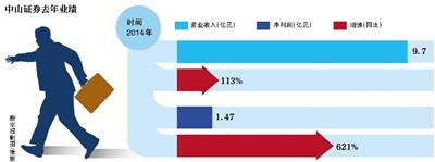 从业绩来看,2014年中山证券净利润为1.47亿元,同比增长621%;据广发证券研报显示,中山证券2015年上半年,公司净利润增长27.4倍。不过,分析人士称,中山证券的业绩亮丽主要是由于去年以来市场环境火爆,互联网金融对业绩的贡献有限。