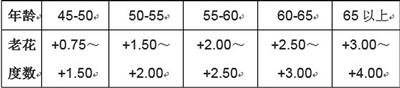 看书、看报、写字、看手机、看平板的使用距离为33cm,称为阅读距离,使用者的年龄和老花镜的度数比例关系(供参考):