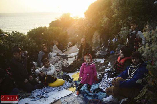 11月7日,土耳其穆拉省博德鲁姆,来自叙利亚等地的难民藏身山间灌木丛中,试图等到天黑后前往希腊科斯岛。