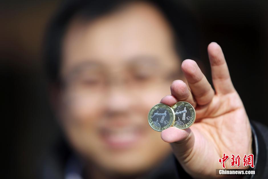 11月26日,山西太原,中国银行工作人员展示中国航天纪念钞。当日,由中国人民银行发行的航天纪念币(面值10元)、航天纪念钞(面值100元)开始公开兑换,与现行流通人民币职能相同,与同面额人民币等值流通,发行量分别为1亿枚、3亿张。 中新社记者 张云 摄