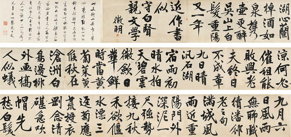畅叙幽怀,游心万仞,古人之所乐也。此次专场之中,文徵明《行书自作诗》姿态横生,垂老之笔,苍劲可知。金农隶书《相鹤经》四屏原为吴湖帆梅景书屋旧藏,渴笔八分,汉魏皆无此法。国父孙文《博爱》流美自然,非力学所能工。至其矜慎厚重,不诡不随,又适如其人焉。此场亦包含曾国藩、吴昌硕、吴湖帆、谢无量等诸家精品之作,以“畅怀”名之,集三百年来名家墨宝于一堂,相信一定不会辜负有心藏家之期望。