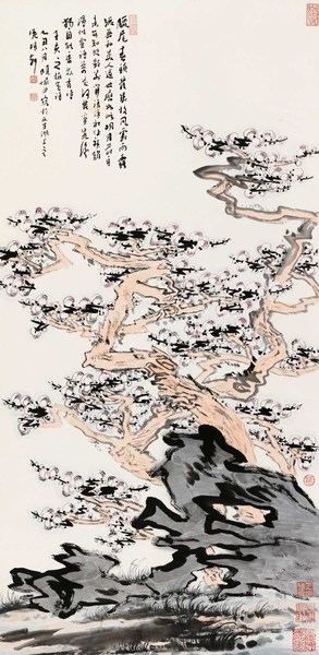 “澄道——近现代绘画夜场”甄选近代名家杰作65件。徐悲鸿《古柏双骏》为画家一生中的重要创作,2005年拍自香港佳士得。这张作品悲鸿先生辗转南京、桂林、重庆三地才得以完成,其颠沛的身世流转是国家的磨难与个人的艰辛的充分写照,反映了大时代的激流沉浮?;齐小度找瓜肽蠲飨吠瓿捎谥飨攀狼耙惶?。于举国悲恸中,赵朴初邀黄胄参加吊唁仪式并补写题记?;齐性嘶谡云映跸壬的宋母锸逼诙诵市氏嘞?、肝胆相照的友谊见证。张大千《春山读书图》创作于1947年,参展于1948年上海中国画苑举办的“张大千近作展”,编号93,时名为《溪山高隐图》。正值张大千用功最勤、临仿最密集的壮年鼎盛时期。此件作品后亦数次刊载于台湾历史博物馆早年出版中。张大千《果洛番女礼佛图》亦早在1946年即参加展览于上海中国画苑“张大千作品展”,殊为难得。