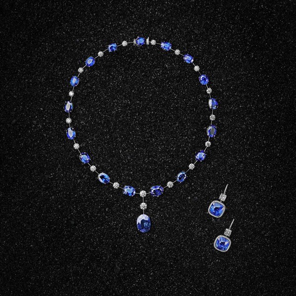 Harry Winston 蓝宝石配钻石项链与耳环套装