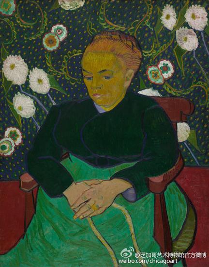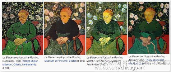 梵高在阿尔勒居住期间描绘了很多夜晚下农田的画面,同时他也画了很多他朋友的肖像画,其中邮差鲁林一家就经常出现在他的作品中。 1888年12月他开始以鲁林夫人为主题作画,总共画了5幅,芝加哥艺术馆收藏的可能是其中的第二幅,梵高喜欢重复画自己的作品,比如《卧室》系列他就画了3幅, 1888年《向日葵》画了4个版本,1889年又重复画了其中的第三和第四个版本。他之所以画了这么多,以他自己的话“是为了保证自己最好的作品能满足所有可能想要它的人”。