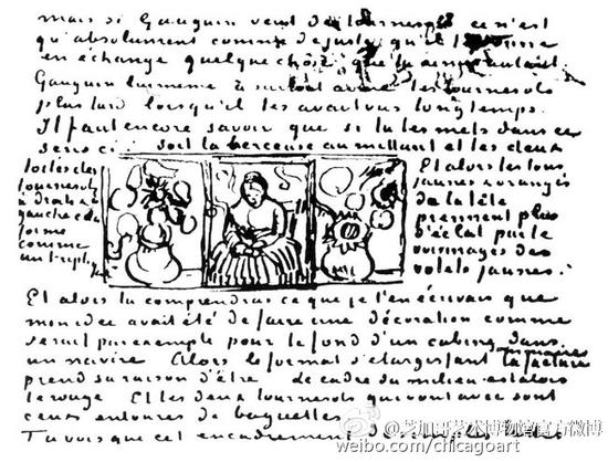 后来,梵高想给高更一个3联画作为装饰, 在1889年5月给弟弟提奥的信中画了个构思的草稿,中间是鲁林夫人,两旁是向日葵, 并解释道“人物的橘黄色头发将在两边黄色翅膀的映衬下更加明亮 ”。