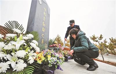 呼格吉勒图骨灰迁入新墓。11月12日,李三仁、尚爱云夫妇前来祭奠儿子 供图/新华