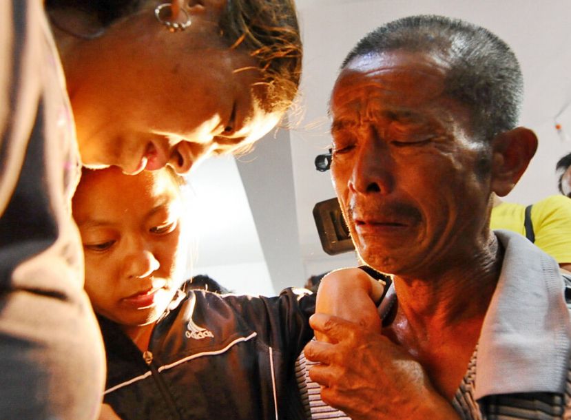 对于被拐详细经过,李艳红讲不清楚。被拐后经历了什么,或许永远都没人知道。直到2006年左右,她进入广东省高州市的一个手套厂打工,认识了工友邬忠国?!拔矣龅剿氖焙?,她一个人在厂里打工,无依无靠。”当时邬忠国31岁,遇到李艳红后,一来二去就熟悉了,加上李艳红智力有点障碍,邬忠国生活上给予了照顾,后来产生了感情。图为六十岁的李祖明见到女儿,哭成了泪人儿。