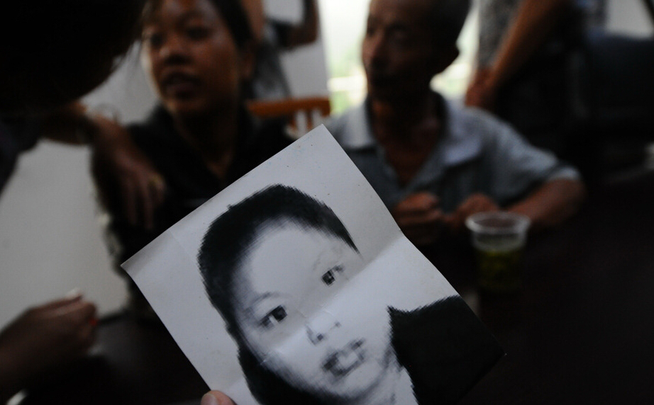 李艳红在2004年农历五月初五被人拐走,当时18岁。端午节划龙舟,全家人都去看龙舟赛去了,看完龙舟回家,就发现女儿不见了。李祖明有一儿一女,但儿子在10岁时落水死亡?!拔艺飧龉媚锬宰佑械阄侍猓蚁嘈潘隙ɑ辜堑梦?。”60岁的李祖明与记者聊起寻女之路,他说找了整整11年,听说女儿是被同村的一个妇女拐卖,但是人到底去了哪儿,一直都没有音讯。图为李祖明至今保留着11年前女儿被拐后张贴的寻人启事照片。