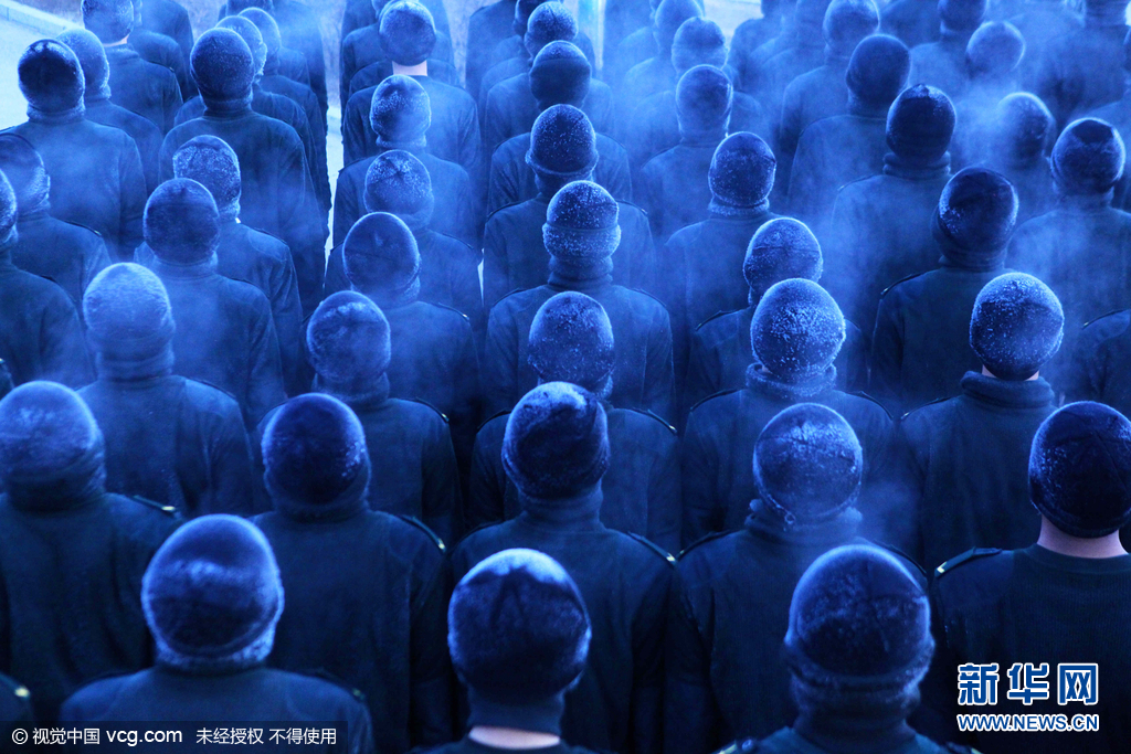2015年11月29日,黑龙江省黑河市,黑龙江省军区某边防团百余名“95后”新兵冒着零下20余度严寒气温进行五公里体能训练,短短半个小时后,战士们身体里散发出来热气在冷空气的作用下,在战士们的帽子、绒衣外形成了一层厚厚的“冰铠甲”,犹如“兵马俑”兵团来袭。冬训中,该部新兵营坚持从难从严从实战要求出发,以提高新兵们军事技能与素质为基础,按照实战标准摔打磨练部队,不断锤炼作风,磨砺意志,在千里边防线上掀起了一股冬季练兵的热潮。图片来源:视觉中国