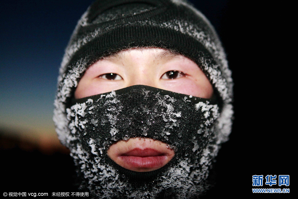 2015年11月29日,黑龙江省黑河市,黑龙江省军区某边防团百余名“95后”新兵冒着零下20余度严寒气温进行五公里体能训练,短短半个小时后,战士们身体里散发出来热气在冷空气的作用下,在战士们的帽子、绒衣外形成了一层厚厚的“冰铠甲”,犹如“兵马俑”兵团来袭。冬训中,该部新兵营坚持从难从严从实战要求出发,以提高新兵们军事技能与素质为基础,按照实战标准摔打磨练部队,不断锤炼作风,磨砺意志,在千里边防线上掀起了一股冬季练兵的热潮。