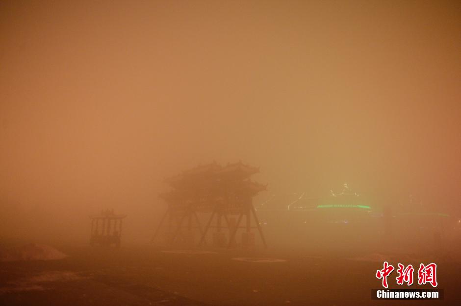 11月29日夜,呼和浩特雾霾锁城,晚间至次日凌晨空气污染最为严重。市内部分环境监测点污染数据显示:空气质量指数AQI为500;细颗粒物PM2.5指数峰值为655,属严重污染级别。 中新社记者 刘文华 摄