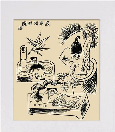 生于1900年的张光宇是中央工艺美术学院创建之初的老院长、教授。他最为人知的身份是连环漫画《西游漫记》的作者、动画片《大闹天宫》的美术设计。尽管张光宇在漫画、动画、电影美术等多个领域有深远影响,但在许多文化老人看来,张光宇在中国式现代艺术发展中所起到的作用并没有得到应有的重视。而近两三年来,学术界已经开启了对张光宇艺术的重新追溯之旅。此次拍卖也是从市场层面对张光宇艺术成就的另一种回应。本次拍卖将集中呈现张光宇一系列水彩、水墨及漫画创作,其中包括针砭时事的辛辣《岁寒清供图》(下图),民间广泛传播的《神笔马良》,水墨作品《孙悟空》等。