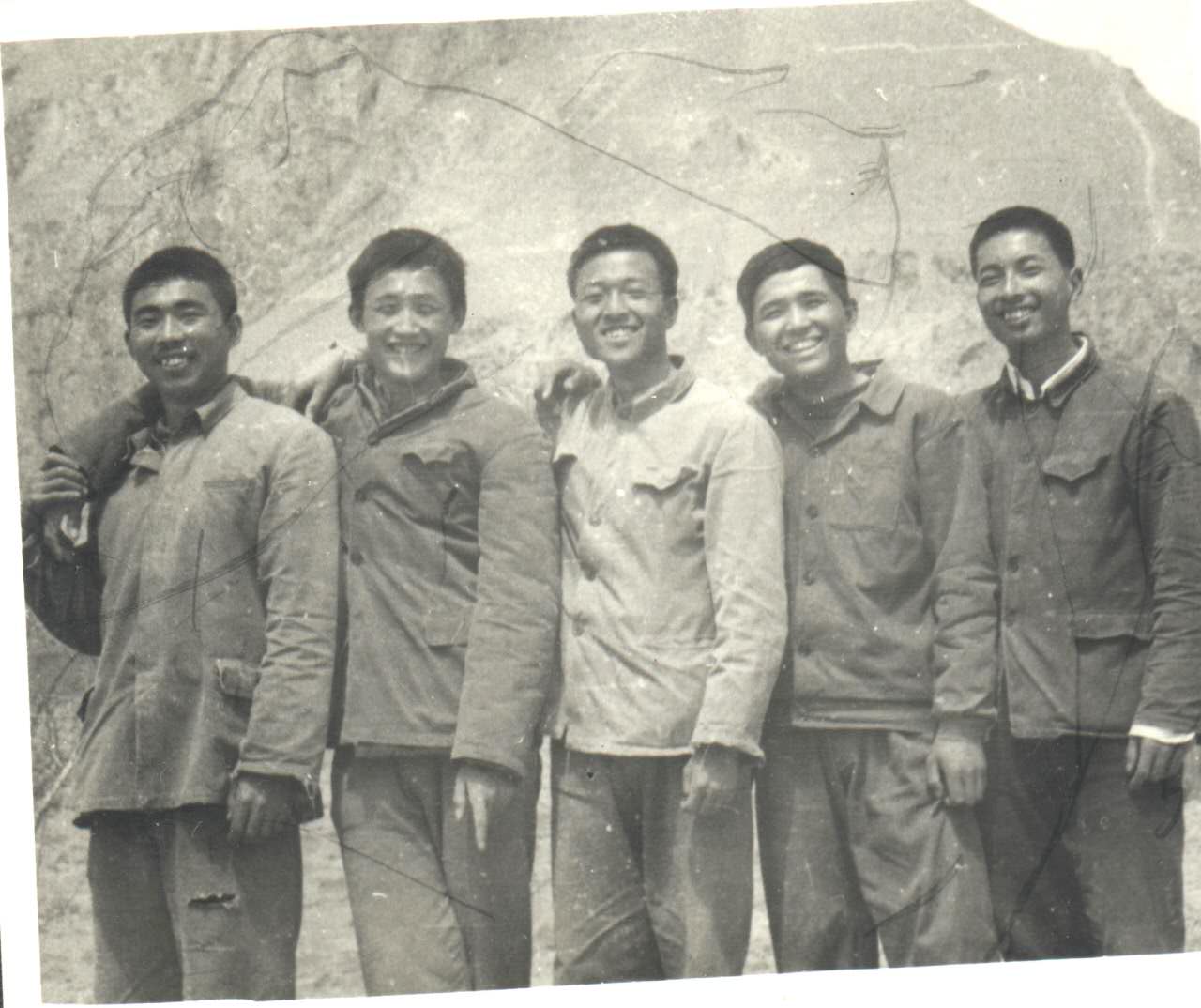 1971年蔡国雄(右一)在陕西插队时和知青在一起。