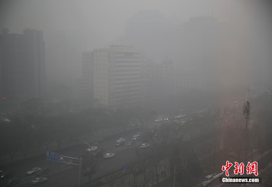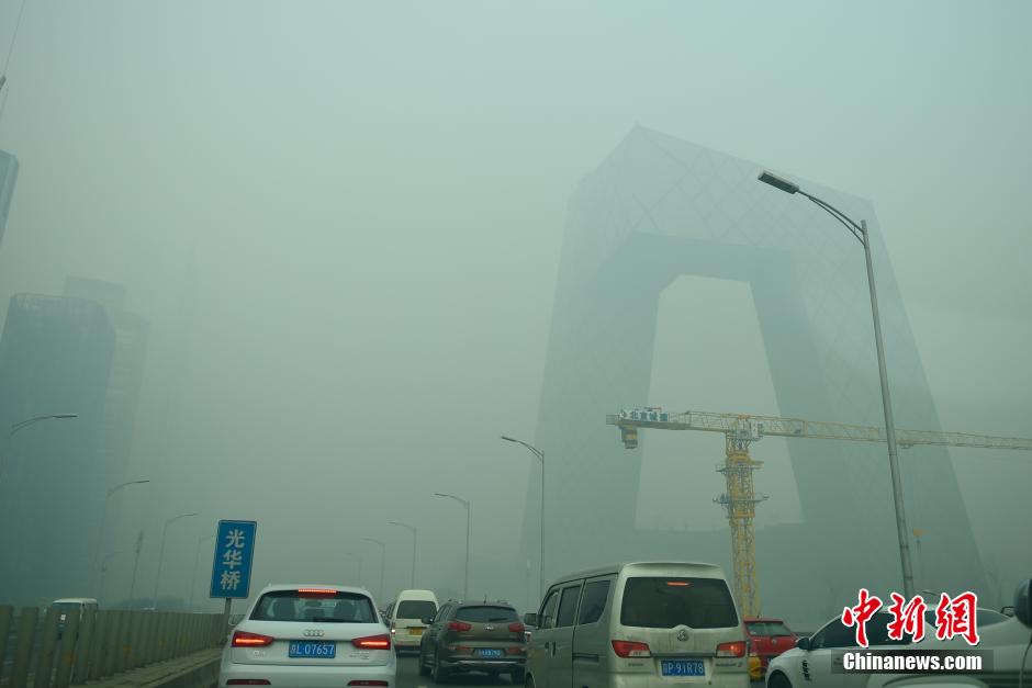11月30日,北京现空气重污染过程,这是自今年3月31日《北京市空气重污染应急预案》修订后,首次启动橙色级别的预警,也是今年首个空气重污染橙色预警。中新社记者 张浩 摄