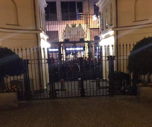 “抱歉,有三个人爬到我们大门上插旗,还扔水瓶子、土豆、鸡蛋?!?/p>