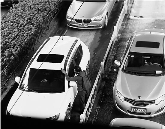 走到车头位置后,他便举起手中的抹布,在前挡车窗上抹了三四下,接着便脸朝着我做了一个行乞的手势??墒?,当他发现我对此无动于衷,还刻意回避他眼光时,突然就趴在了车头前。