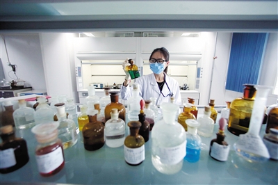 大兴生物医药基地转型升级后的北京协和药厂实验室,实验人员正在研发药品。