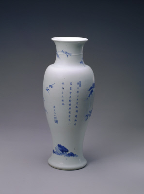 清康熙 青花松竹梅纹诗句观音尊 北京故宫博物院藏