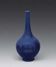 莱菔即萝卜,莱菔尊故又称“萝卜尊”。莱菔尊为清康熙朝独特尊式之一,器呈侈口、细长颈下饰双弦纹、丰肩、长腹下敛、假圈足,足脊窄细若萝卜。莱菔尊造型有豇豆红釉、天蓝釉、苹果青釉等品种??滴醭葱碌睦齿首鹬幸贼购煊晕罴选?/p>