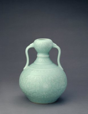 清雍正 粉青釉凸花如意耳蒜头瓶北京故宫博物院藏