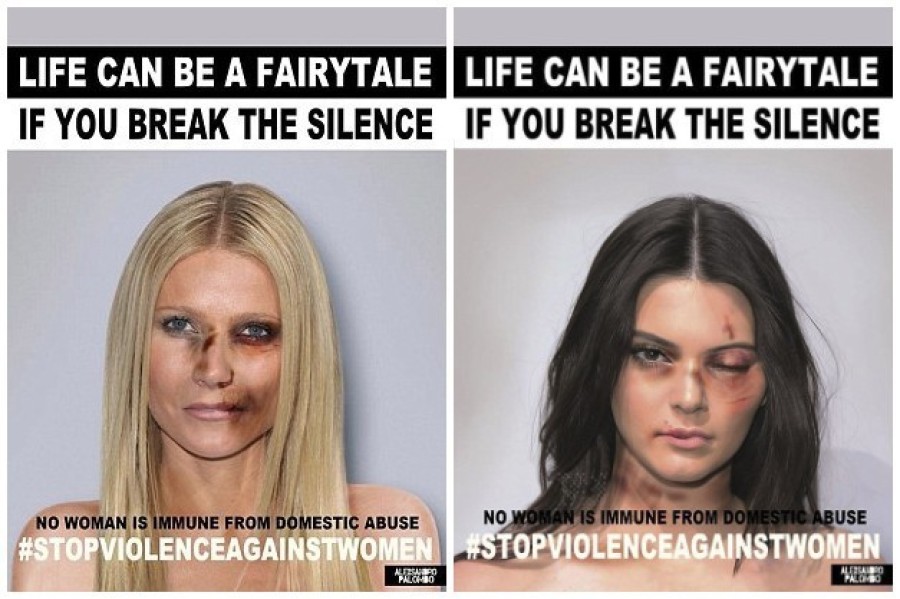 美国艺术家PS女星受虐照 呼吁抵制家暴